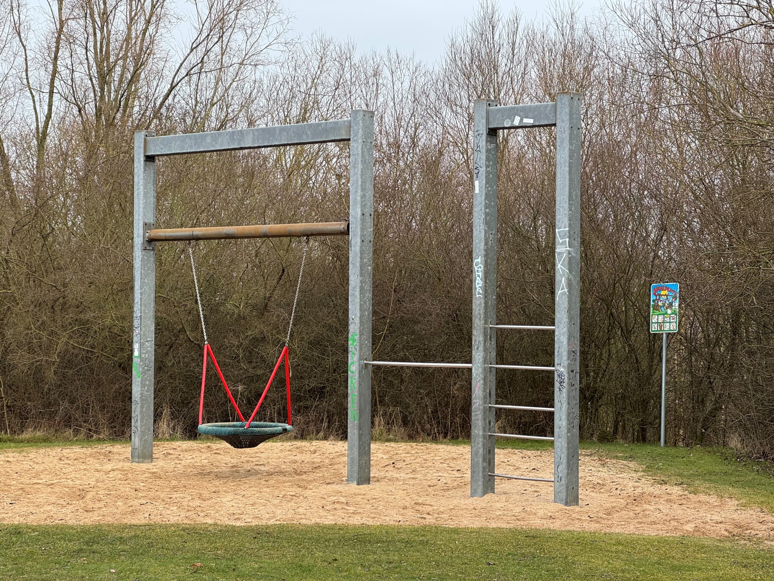 Im Trockenen Bach kann mit Hilfe einer Pumpe eine Landschaft mit Wasser geflutet werden. Es gibt Steine und Findlinge zum Tasten und Klettern und zum Testen der Geschicklichkeit einen Balancierbalken.
