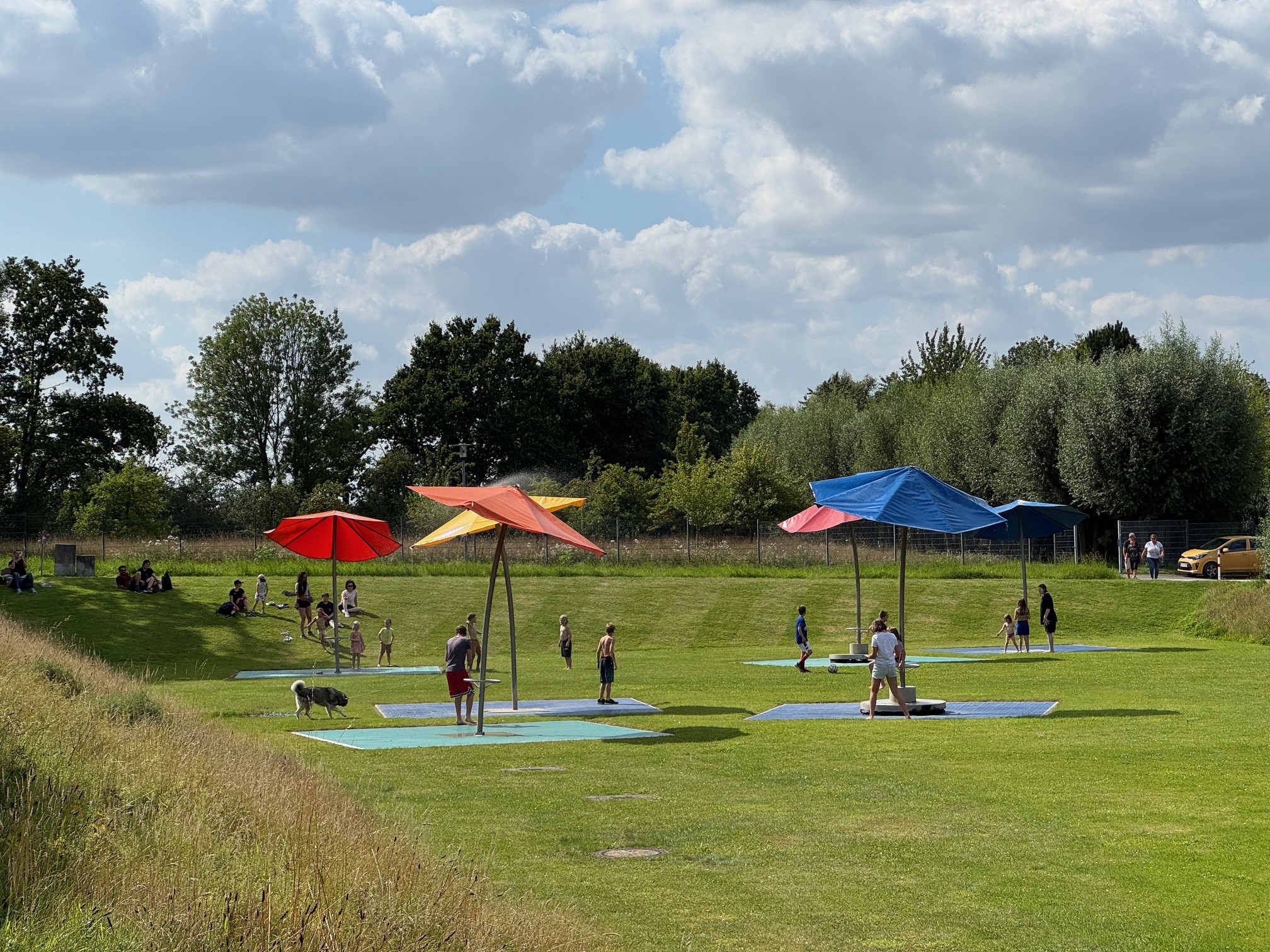 Im Sprühgarten werden wassersprühende Schirme zum Dreh- und Angelpunkt. Sie demonstrieren auf spielerische Art, wie wichtig und lebensspendend Wasser für die Natur ist.